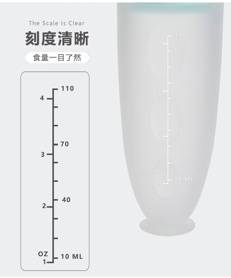 - 产品材质:这款硅胶喂养勺瓶精心选用高品质食品级硅胶作为主体材料,这种硅胶材质不仅安全无毒,还通过了严格的健康标准测试,确保在接触宝宝食物时不会释放任何有害物质。硅胶的柔软性让勺瓶边缘圆润光滑,温柔呵护宝宝娇嫩的口腔和牙龈,减少喂食过程中的不适感。