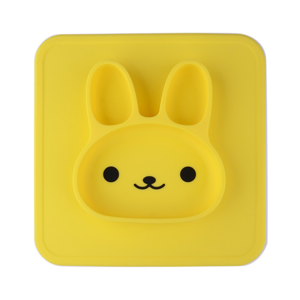1、可爱的卡通兔子餐盘,食品级硅胶材质,背后吸盘,可以牢牢吸在桌子上。