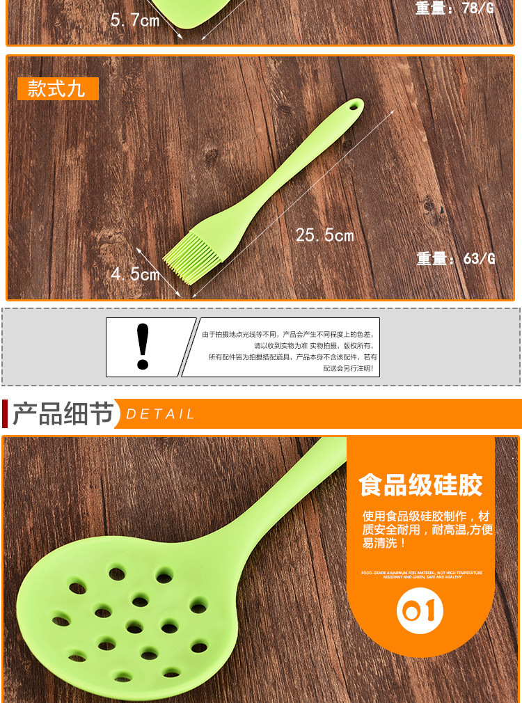• 名称:硅胶厨具9件套,硅胶厨具九件套,硅胶全包一体式厨具