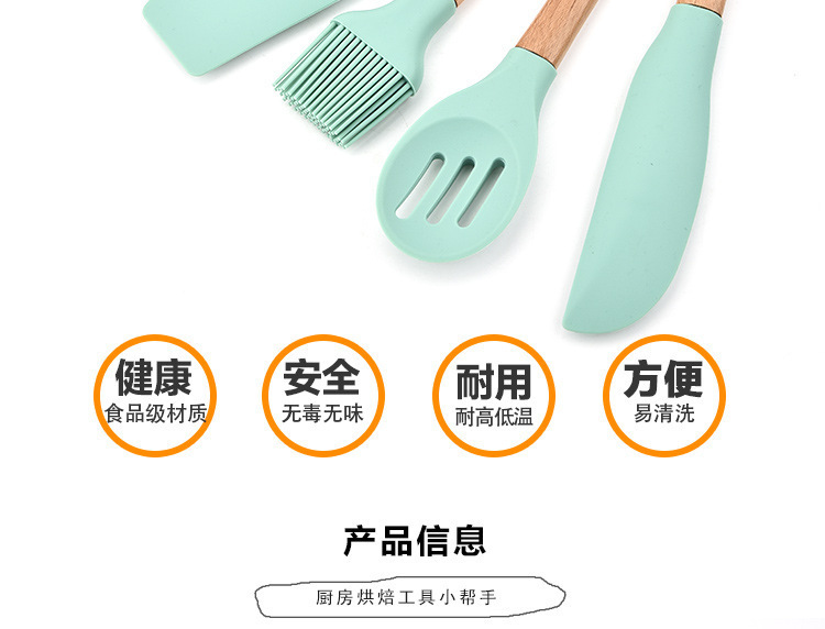 • 木柄硅胶厨具6件套,硅胶厨具六件套木柄
