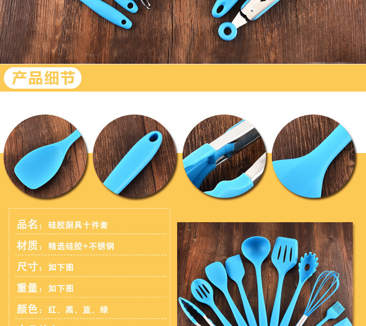 一体成型硅胶厨具10件套,一体成型硅胶厨具十件套