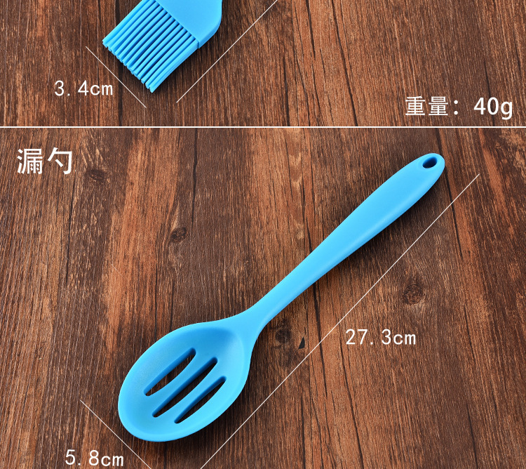 套装:捞面勺、汤勺、锅铲、漏铲、油刷、漏勺、食物夹、打蛋器、奶油刮刀、小刮刀