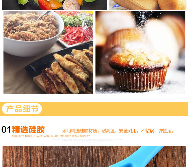 1、精选硅胶,采用精选硅胶材质,耐高温,安全耐用,不粘锅,弹性足
