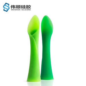 1、硅胶柔韧可弯曲,婴儿使用舒适自在,铲、挖方便轻松,质感柔软,不伤宝宝牙龈