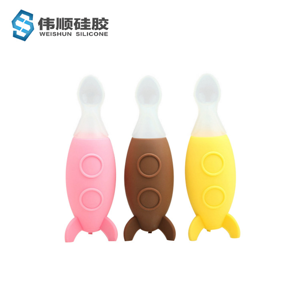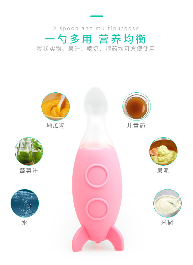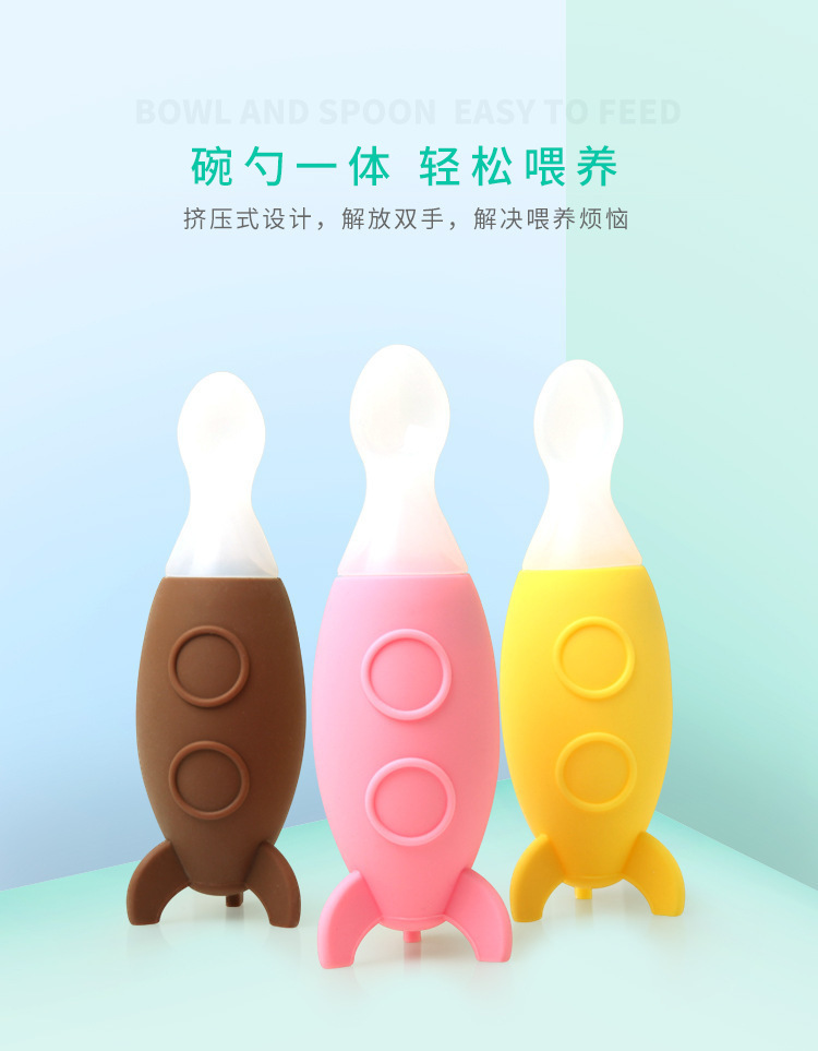 火箭硅胶喂养勺,火箭婴儿辅食勺,宝宝硅胶硅胶软勺