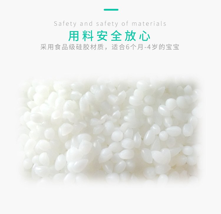 4、用料安全放心,采用食品级硅胶材质,适合6个月-4岁的宝宝