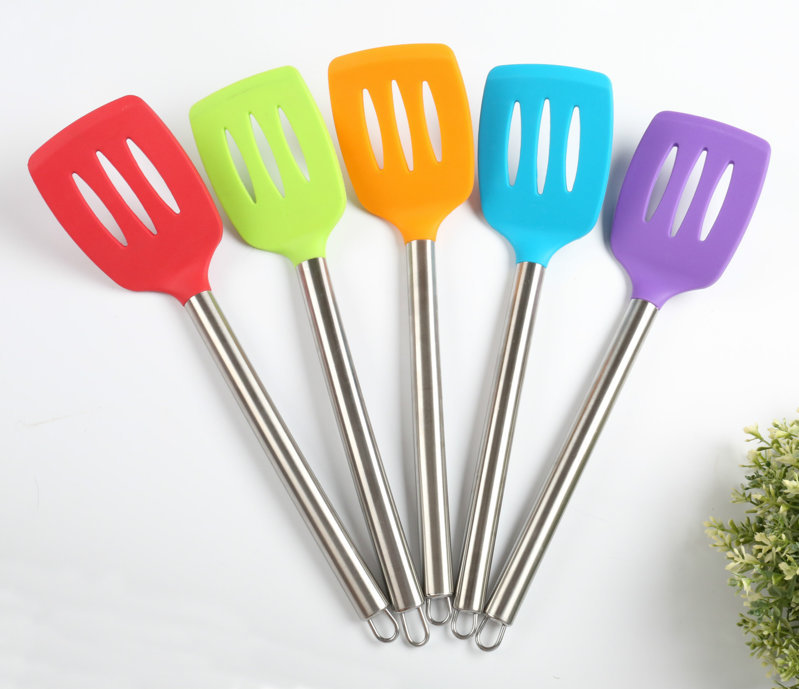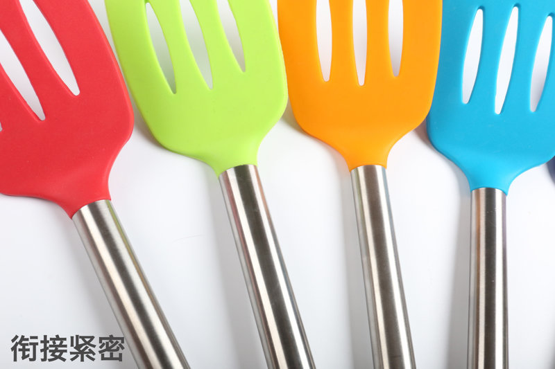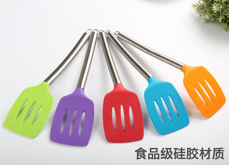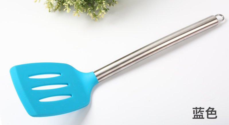 - 不锈钢柄硅胶漏铲,不锈钢长柄硅胶漏铲,不锈钢空心炒菜漏铲