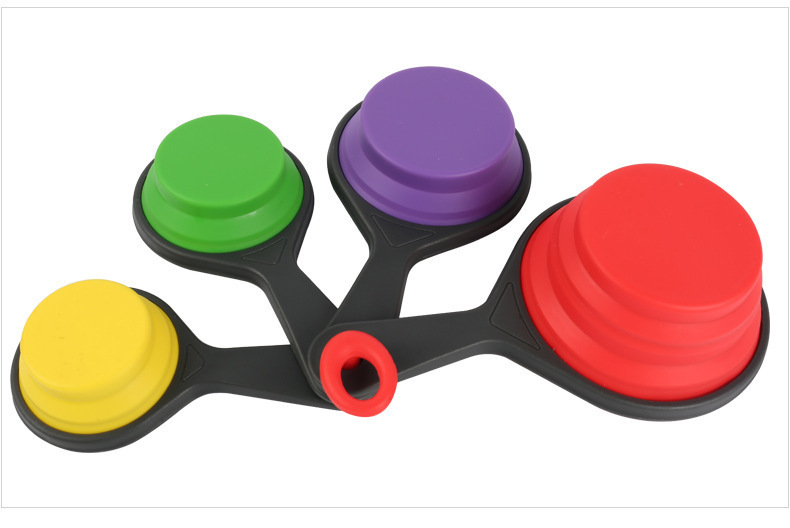 - 硅胶折叠量杯套装,硅胶量杯四件套,硅胶折叠量勺4件套