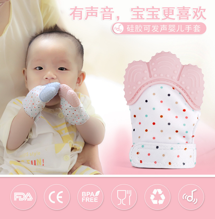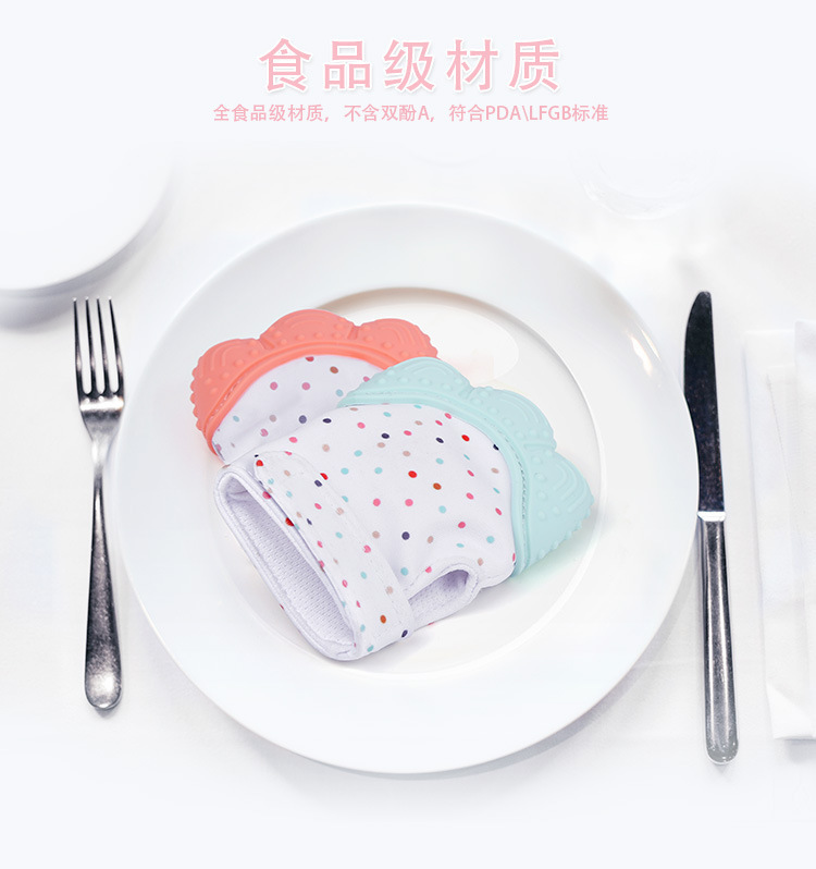 - 硅胶婴儿手套-东莞食品级硅胶婴儿磨牙手套定制工厂,为防止宝宝吃进嘴里,指端采用食品级硅胶,防滑环保,?;けΡο改鄣乃?,更不用担心宝宝爬行时小物品吃进宝宝嘴里。设计方便,随身携带。手腕为魔术贴设计,可调节大小,不分左右手,双手都可戴。